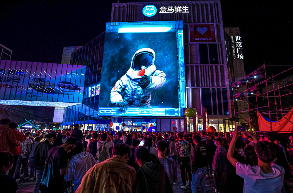 逼真動人的場景,強(qiáng)烈的視覺沖擊,一切仿若就在眼前……濟(jì)南世茂裸眼3D大屏位于城市中心商圈,吸睛效果顯著。這塊L型轉(zhuǎn)角超高清屏幕總面積達(dá)面積高達(dá)608.85平方,轉(zhuǎn)角處采用曲面平滑技術(shù),突出傳統(tǒng),實現(xiàn)無縫鏈接的裸眼3D效果。屏幕下方和連廊橋下方安裝了4組JBL線陣音響設(shè)備,可以實現(xiàn)音畫同步,實時進(jìn)行轉(zhuǎn)播或直播。結(jié)合“5G直播+4K裸眼3D+高清視頻制作”的方式,將城市厚重的文化底蘊、豐富的旅游資源、獨特的人文風(fēng)情、多樣的美食特產(chǎn),集聚于視覺的感官當(dāng)中,帶給觀眾身臨其境的3D超燃震撼效果。