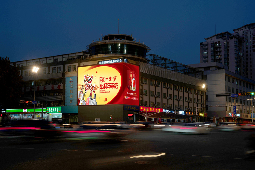 (瀘州老窖投放濟(jì)南齊魯國際大廈戶外LED屏)