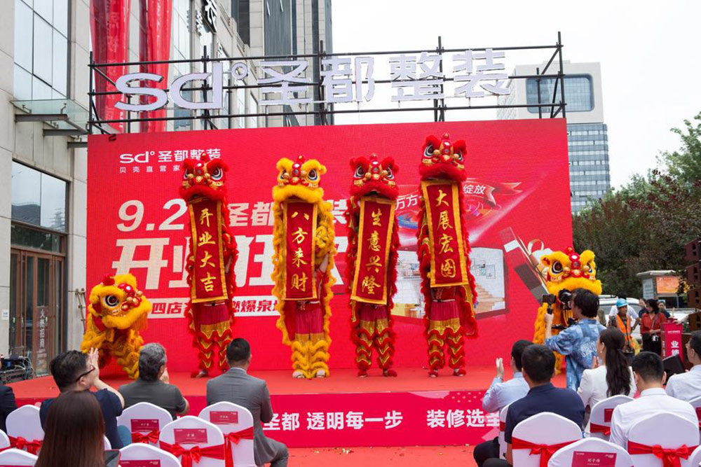 在絢爛的禮花和在場嘉賓的見證下,各位領導共同進行揭牌和剪彩儀式,吉祥瑞獅為圣都送上“開業(yè)大吉、八方來財,生意興隆,大展宏圖”的祝福,祝愿濟南圣都整裝財源廣進,蒸蒸日上。