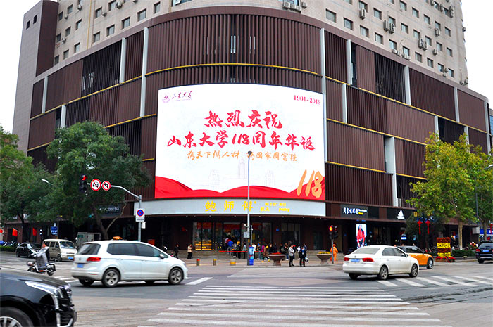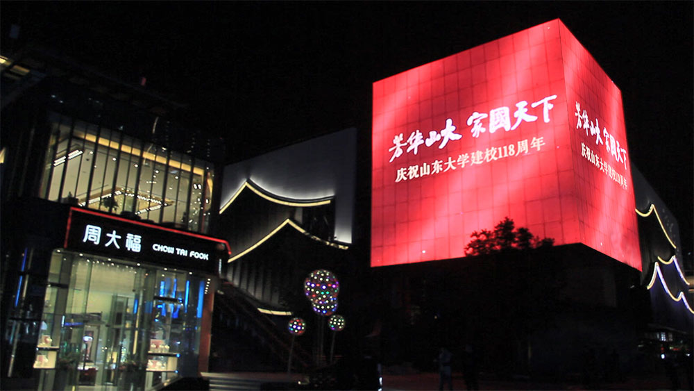 (山東大學投放是“魔方”山東國際時尚創(chuàng)意中心戶外LED屏廣告)