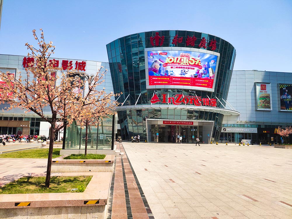 (楊柳春風(fēng)投放“軍區(qū)商圈屏”銀座八一購物廣場戶外LED屏廣告)