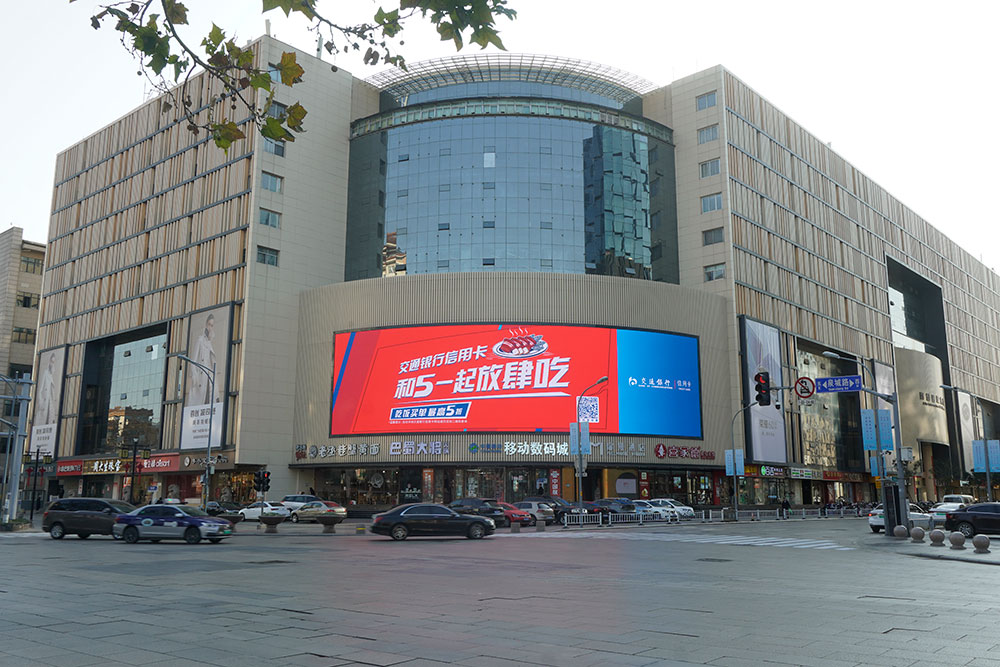 (交通銀行投放“旗艦商屏”山東銀座商城旗艦店戶外LED屏廣告)