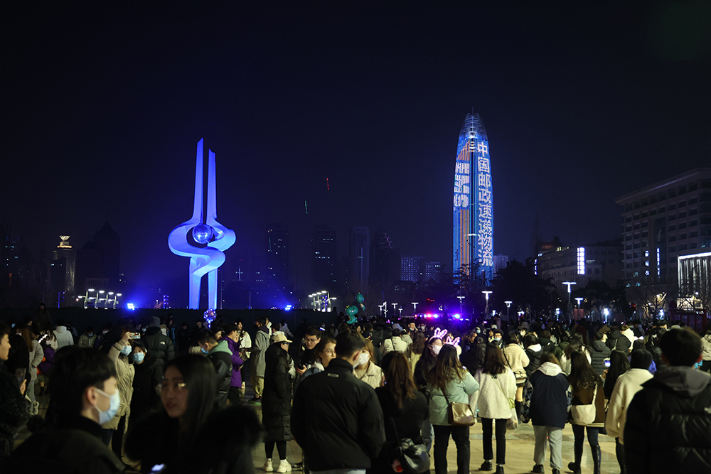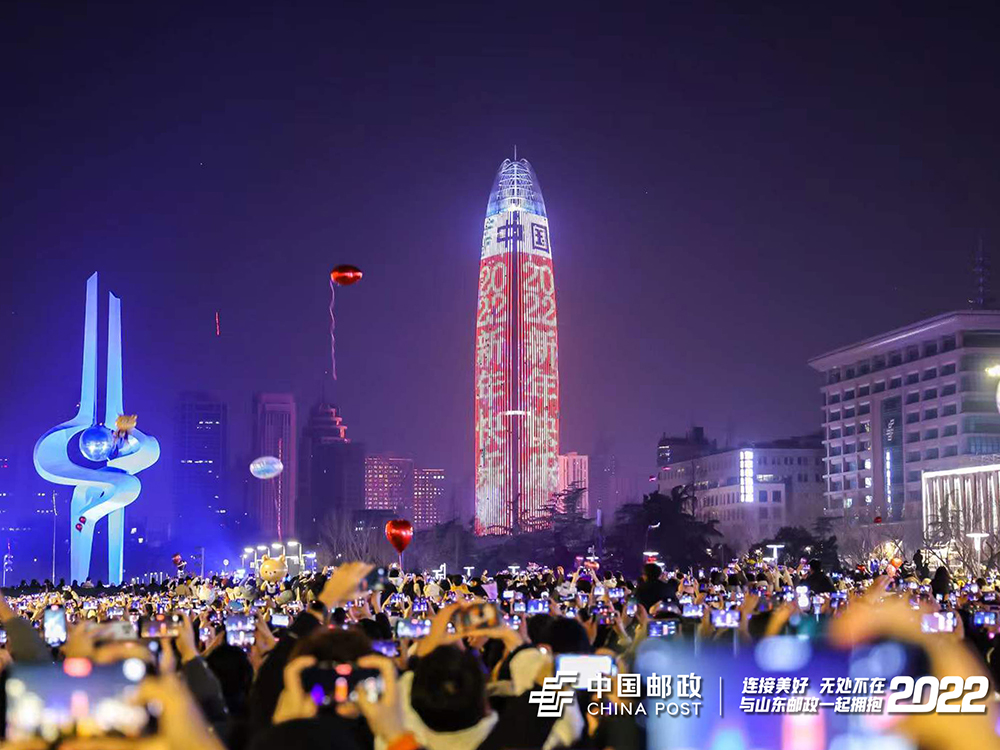 “2022,新年快樂!”“你好,2022!”“中國郵政 連接美好 無處不在”……拔地而起的高樓上,交替閃爍著今夜?jié)献罡叩腟logan。除了送出新年祝福,山東郵政也向多年來關(guān)心和支持郵政事業(yè)的廣大用戶“高調(diào)”致意,霓虹傳情。