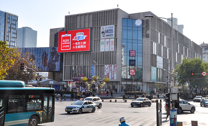 (58同城投放“軍區(qū)商圈屏”銀座八一購(gòu)物廣場(chǎng)戶(hù)外LED屏廣告)
