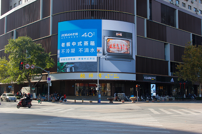 (老板電器投放“省俯”濟南泉城路彩云大廈戶外LED屏廣告)