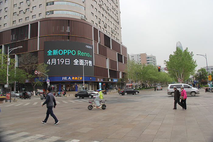 (OPPO投放“省俯”濟(jì)南泉城路彩云大廈戶外LED屏廣告)