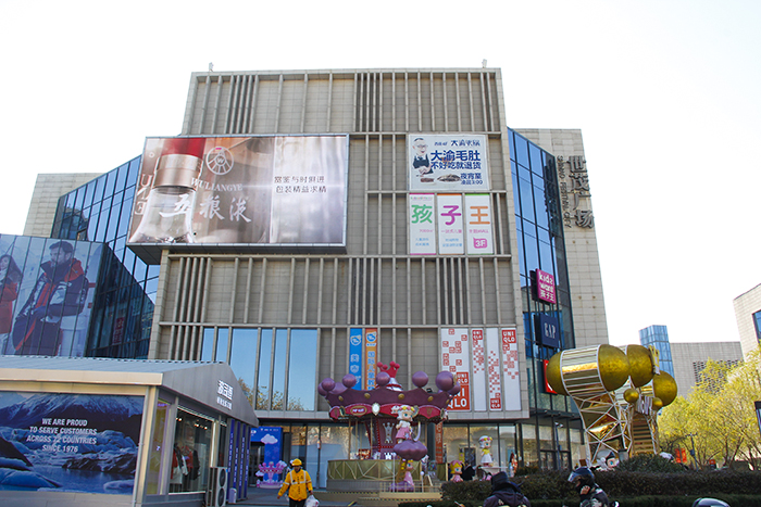 (五糧液投放“軍區(qū)商圈屏”銀座八一購物廣場戶外LED屏廣告)