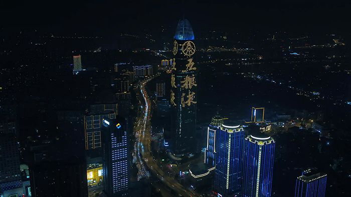(五糧液投放濟南地標媒體-濟南綠地中心廣告)