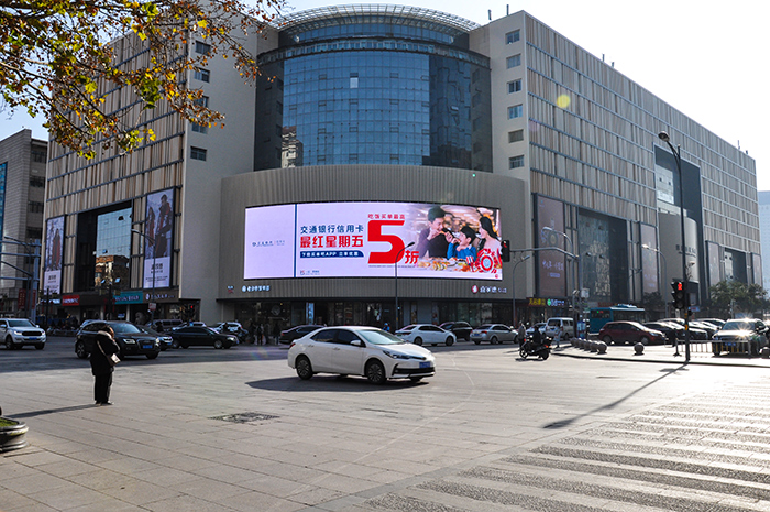(交通銀行信用卡投放“網(wǎng)紅屏”濟南泉城路世茂廣場戶外LED屏廣告)