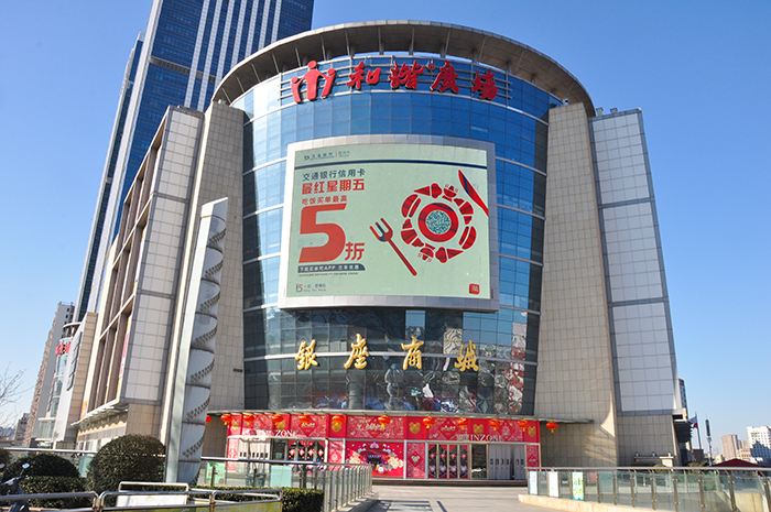 (交通銀行信用卡投放“經(jīng)十屏”銀座和諧廣場戶外LED屏廣告)