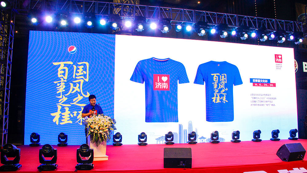 2020年5月31日晚19:30分,百事可樂在由齊魯周刊社、山東發(fā)展網(wǎng)和山東華途文化傳媒有限公司聯(lián)袂主辦的“首屆濟(jì)南節(jié)啟動及標(biāo)識發(fā)布暨愛濟(jì)南城市文化衫發(fā)行節(jié)”活動中,展示桂花味可樂并推出百事可樂濟(jì)南城市文化衫。
