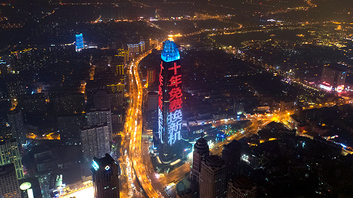 濟(jì)南地標(biāo)媒體燈光秀(簡稱綠地高媒),是山東華途文化傳媒有限公司獨家運營的濟(jì)南地標(biāo)媒體,濟(jì)南綠地中心素有“泉城之根”、“濟(jì)南之根”之稱,面積63000平方米、呈三面環(huán)繞360度展示,具有超大面積、超強(qiáng)視覺沖擊、變幻豐富多樣及受關(guān)注高、視覺渲染力極大等優(yōu)勢。